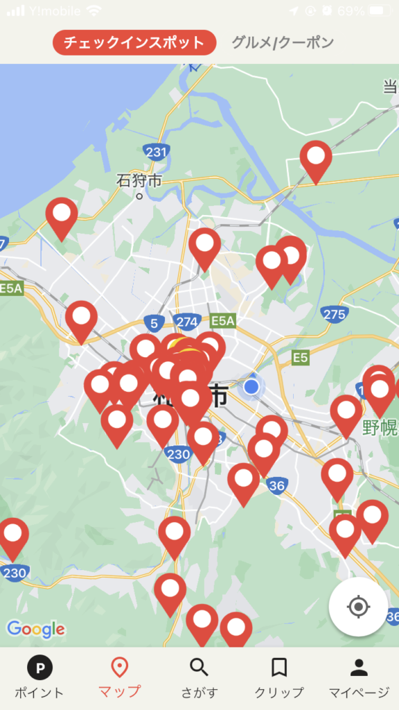 札幌市には2つしかなかったものが、マップ上では札幌市の表記が見えないくらいになっています。